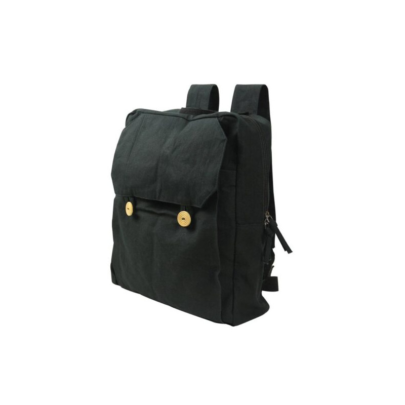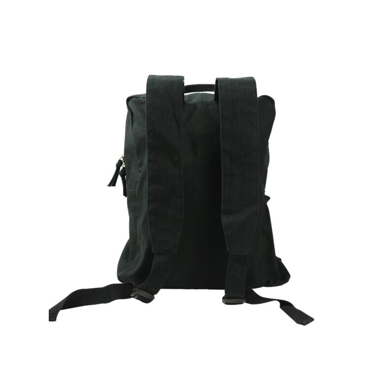 Black Cotton Backpack with Zipper Closure