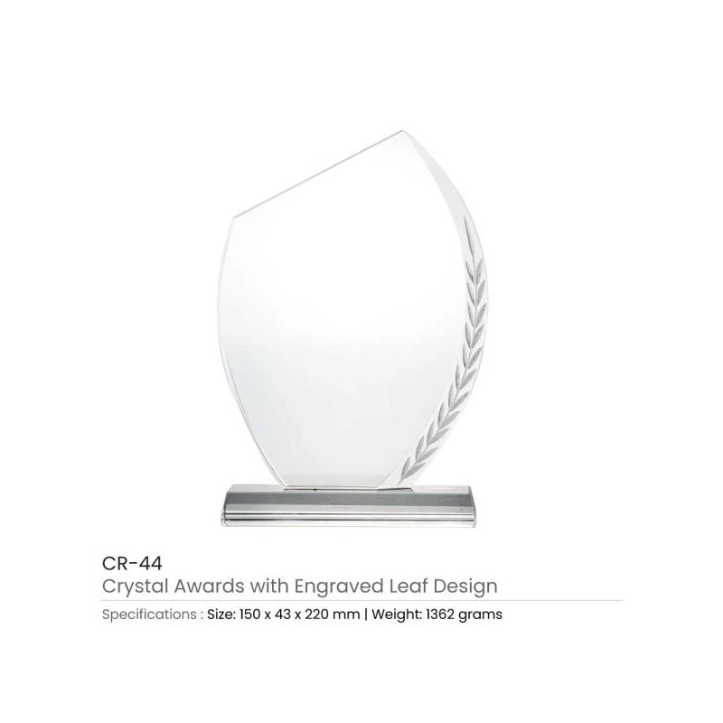 exemplifies sophistication and elegance, making it an ideal choice for corporate gifts and recognition ceremonies. Crafted from high-quality crystal, these awards feature a stunning engraved leaf design that symbolizes growth and achievement, perfect for honoring outstanding performance within your organization.