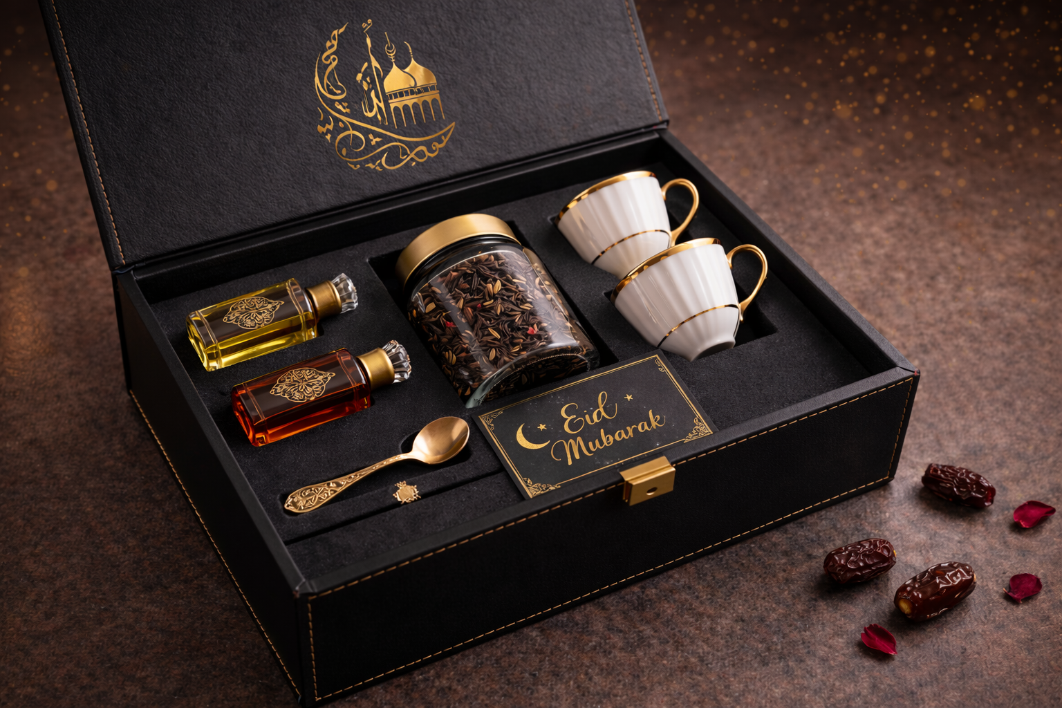 This Eid corporate gift blends aromatic indulgence with festive sophistication, making it perfect for executive presentations, client appreciation, and high-end corporate Eid campaigns.